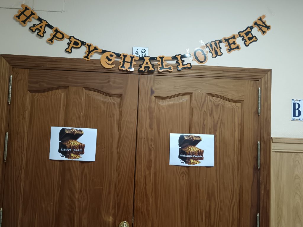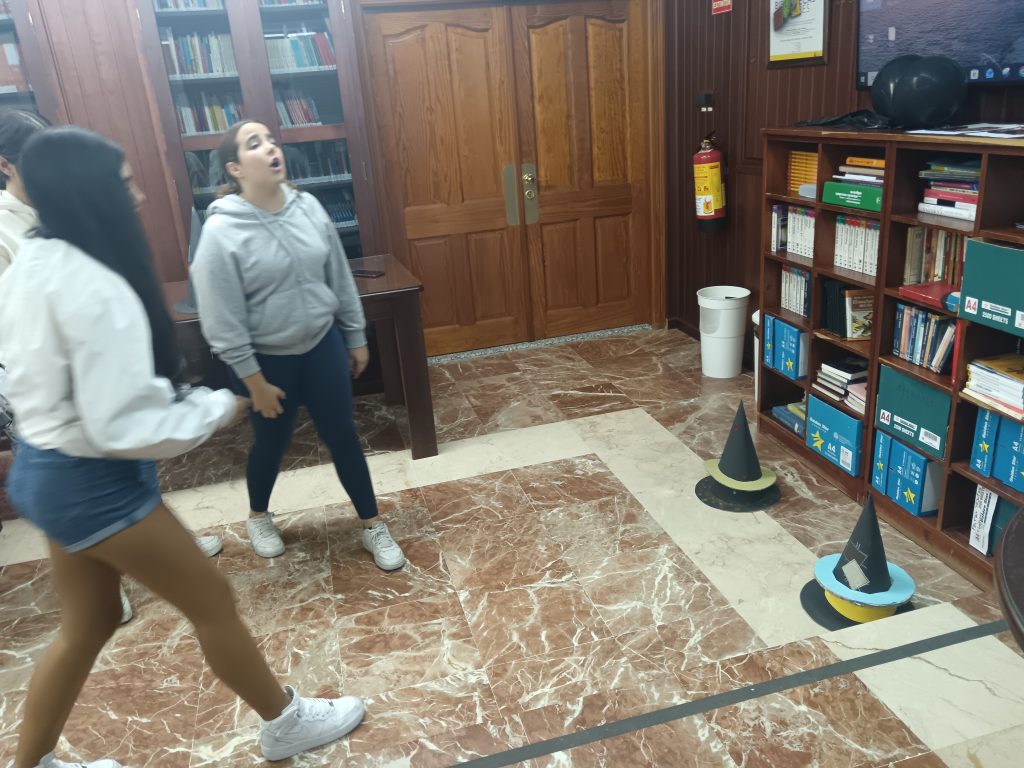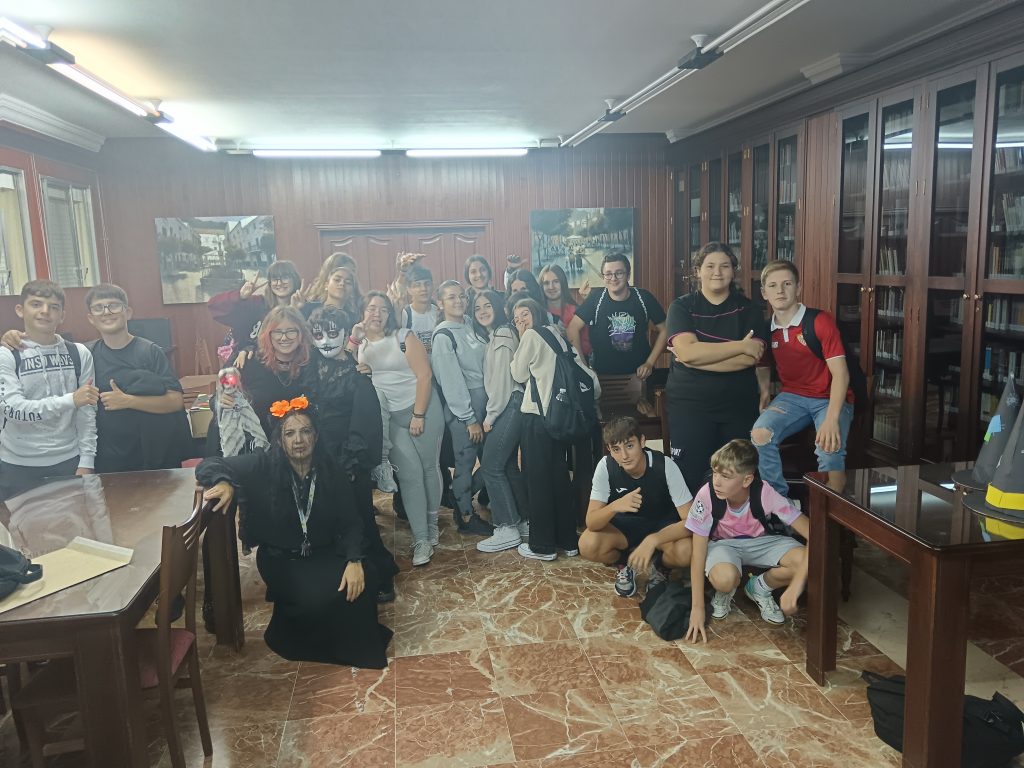 El pasado 31 de octubre, coincidiendo con la celebración de Halloween, el alumnado de 3º y 4º de ESO vivió una jornada diferente en la Biblioteca y el Aula de Emprendimiento del centro. El Departamento de Inglés organizó una actividad inmersiva que combinó la dinámica de una Escape Room con una tradicional búsqueda del tesoro.