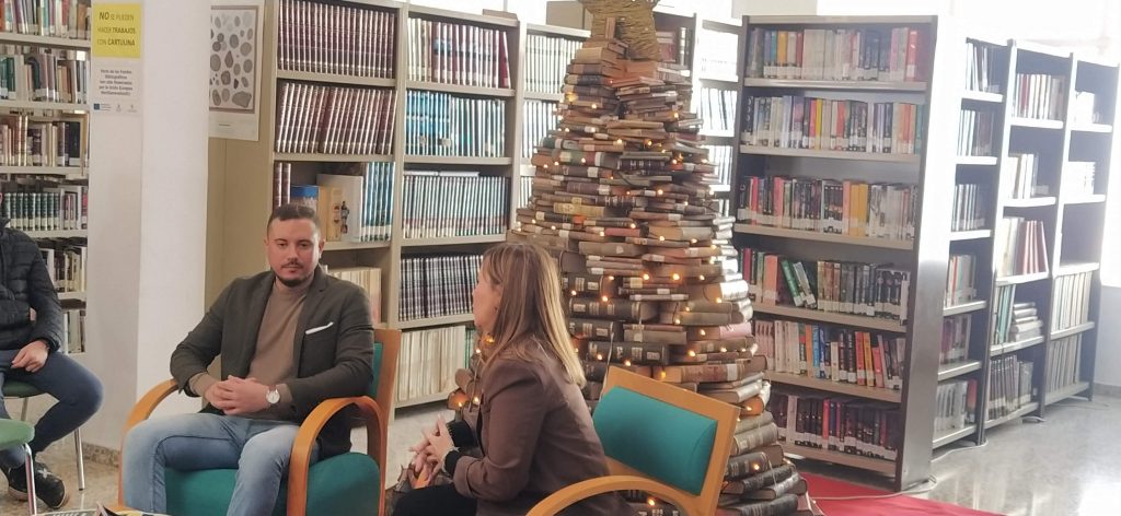 Con motivo del Día de la Lectura, celebrado el pasado 16 de diciembre, un grupo de alumnos de 4º ESO de nuestro centro visitó la Biblioteca Municipal que para la ocasión lucía un original árbol de Navidad elaborado con libros y enciclopedias antiguas.